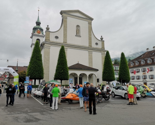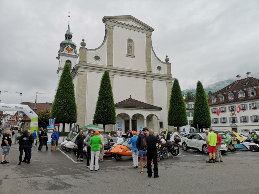 Heute stand die «Tour de Schwyz» auf dem Programm, mit Stopps in Küssnacht, Brunnen und Freienbach. Besonders gefreut hat uns natürlich der Halt in Küssnacht. Auf dem Seeplatz, wunderschön zwischen der Kirche St. Peter und Paul und dem See gelegen, war die Stimmung wie immer toll und viele kamen, um sich über die verschiedenen Elektromobile zu informieren. Von Küssnacht ging es weiter nach Brunnen, zu ecocoach / ecovolta. Ecocoach ist auf ganzheitliches Energiemanagement im Heimbereich spezialisiert, also auf das Zusammenspiel von Produktion (Photovoltaik), Speicher, Smart Home, und eben auch Lademöglichkeiten für Elektroautos. In ihrer neuen Division ecovolta entwickeln sie Akkus für die Elektromobilität, welche unter anderem auch bei Rigitrac zum Einsatz kommen. Womit dann auch schon wieder ein Link zu Küssnacht hergestellt wäre, die sind ja beinahe unsere Nachbaren.