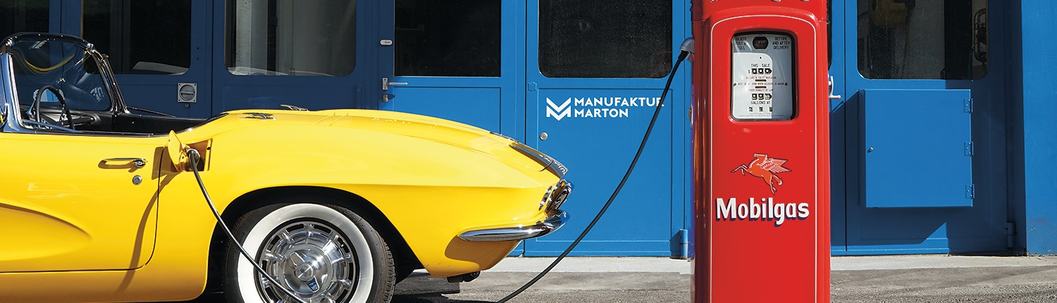 Sie suchen nach einem Blickfang vor Ihrem Unternehmen oder wünschen sich mehr Stil in Ihrer Garage? Eine alte Zapfsäule als Ladestation versorgt Elektroautos mit Strom. Aber auch ganz andere Formen sind möglich, denn Ihren Fantasien sind keine Grenzen gesetzt. Wir realisieren Ihre individuellen Ideen und beraten Sie gerne.